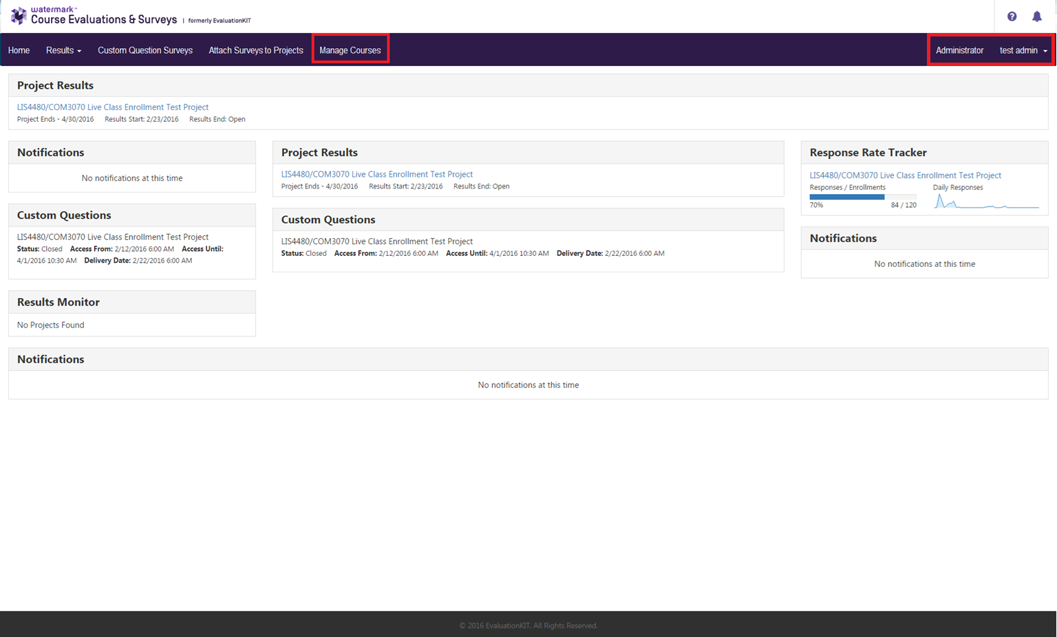 The following steps will assist you with managing your enrollments for Watermark Course Evaluations & Surveys (formerly EvaluationKIT). Instructors, you can change survey start and end dates and add instructors as well as contact your departmental evaluation administrator to opt out of having your course evaluated.