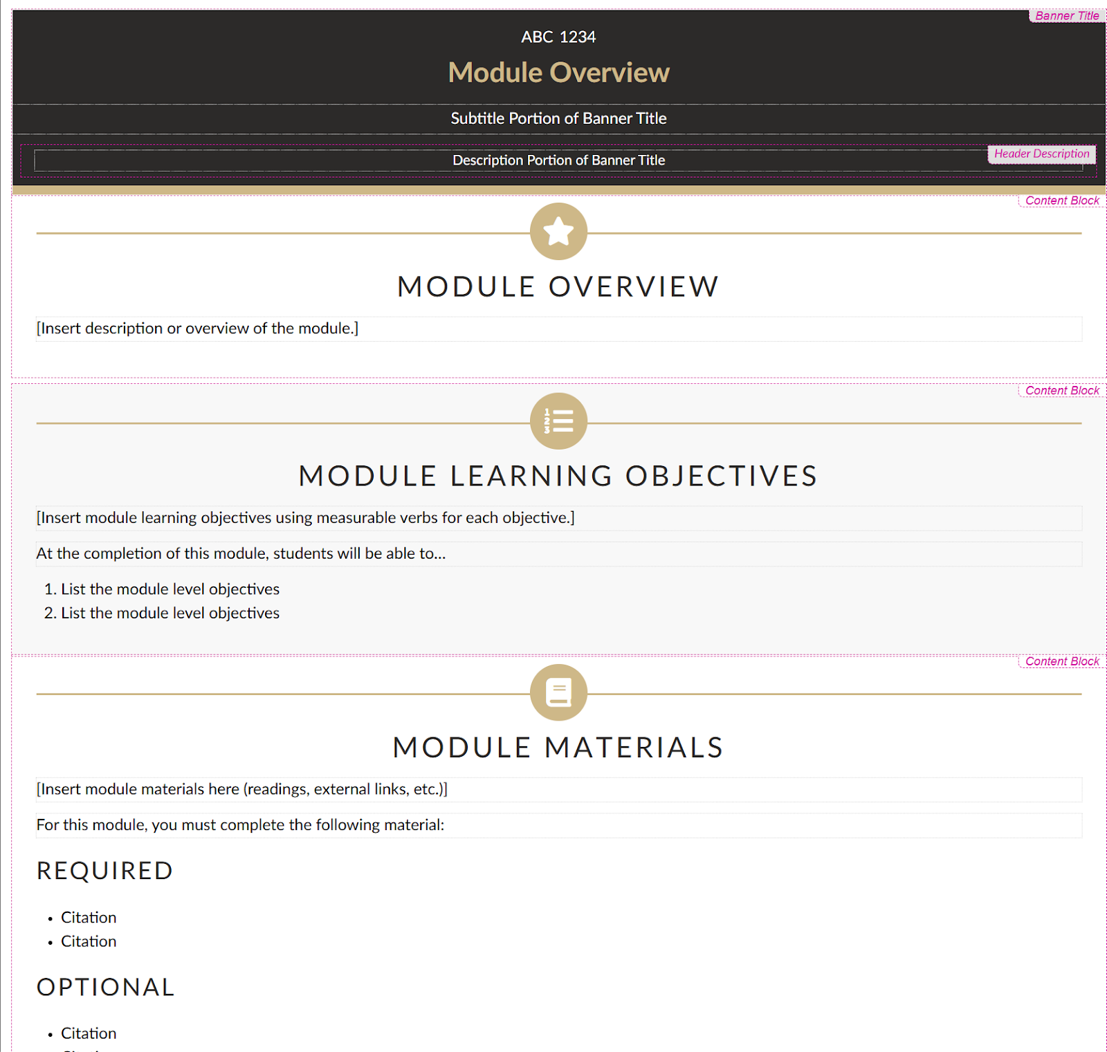 Click on the screenshots below to view examples of how Design Tools templates can be used in Canvas.- Module Overview: