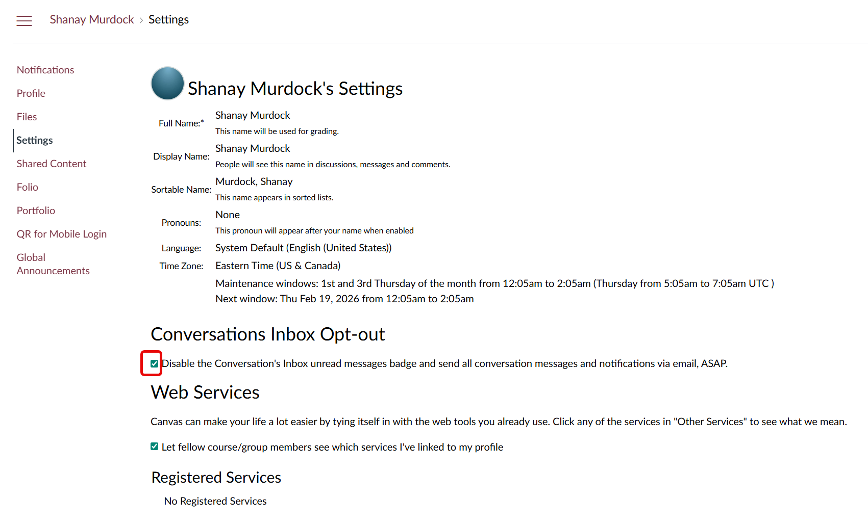 Note: It is still important for you to verify that your Canvas notifications are set up appropriately before you opt out of Canvas Conversations, or you may miss some messages.