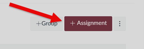1. In the Assignments option in your Course, select "+ Assignment" on the top-right of the window to create a new assignment.