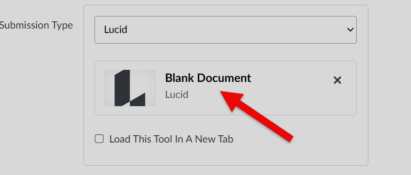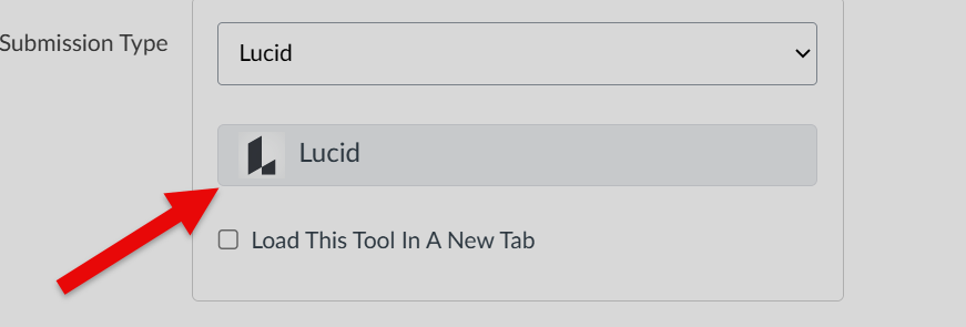 2. Under "Submission Type" activate the drop-down list and select Lucid. You can either load this tool in a new tab by checking the box under the dropdown, or leave it as an iframe.