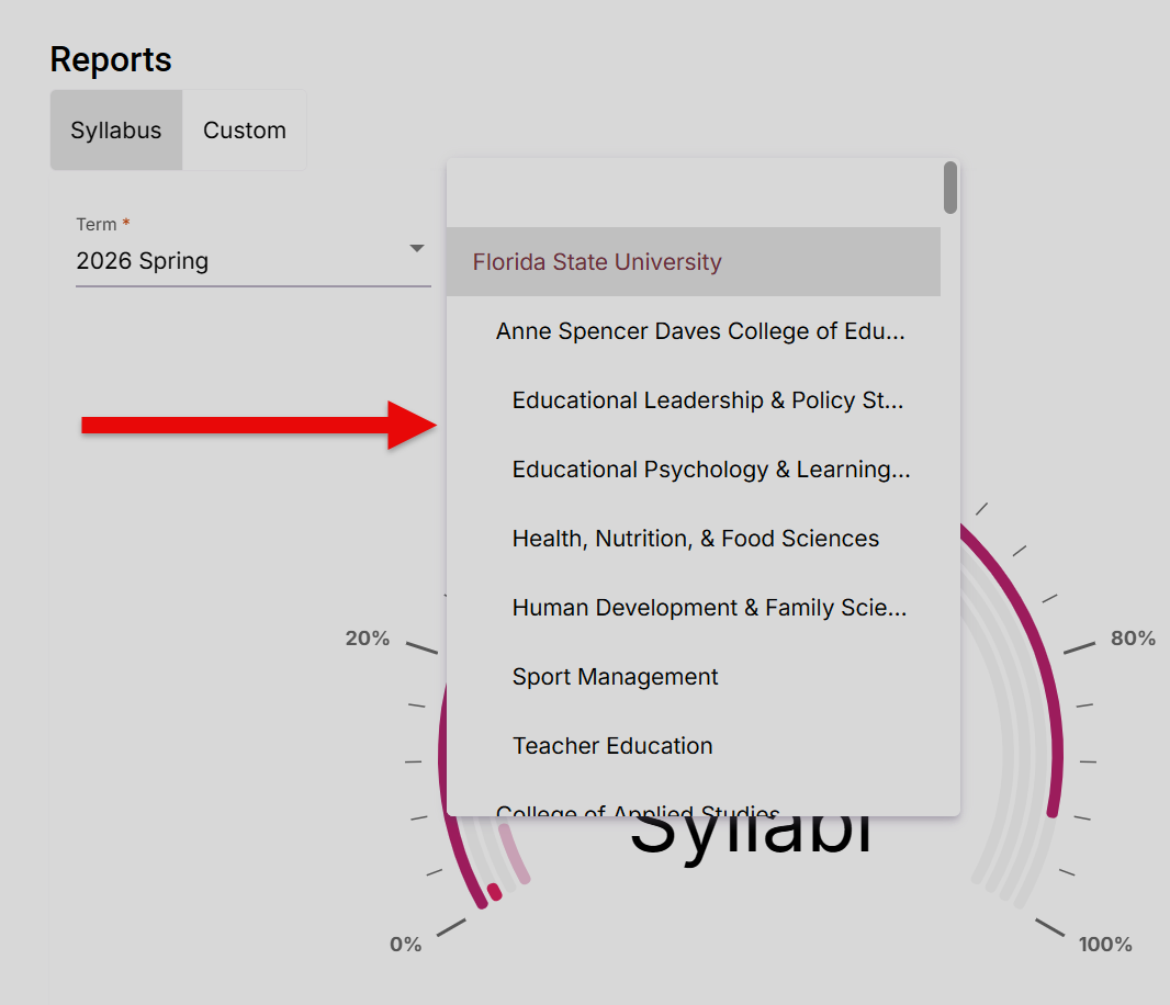 The Reports page will populate on the Syllabus tab.