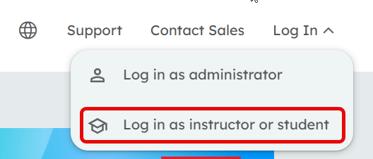 - Click Log in as instructor or student.